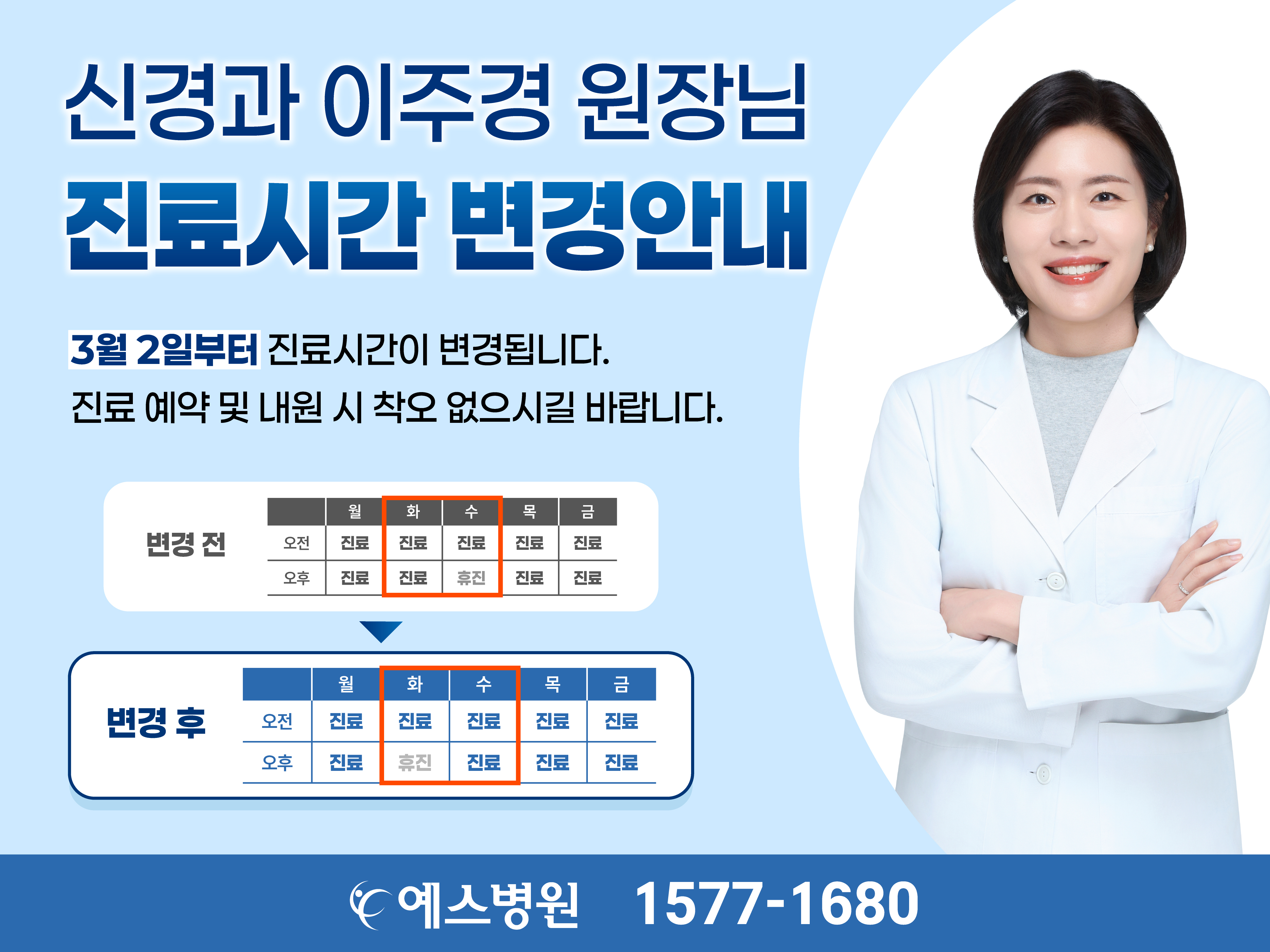 신경과 이주경 원장 "진료시간 변경안내"