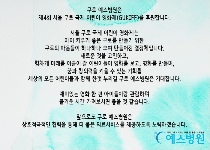 구로 예스병원은 제 4회 서울 구로 국제 어린이 영화제(GUKIFF)를 후원합니다.