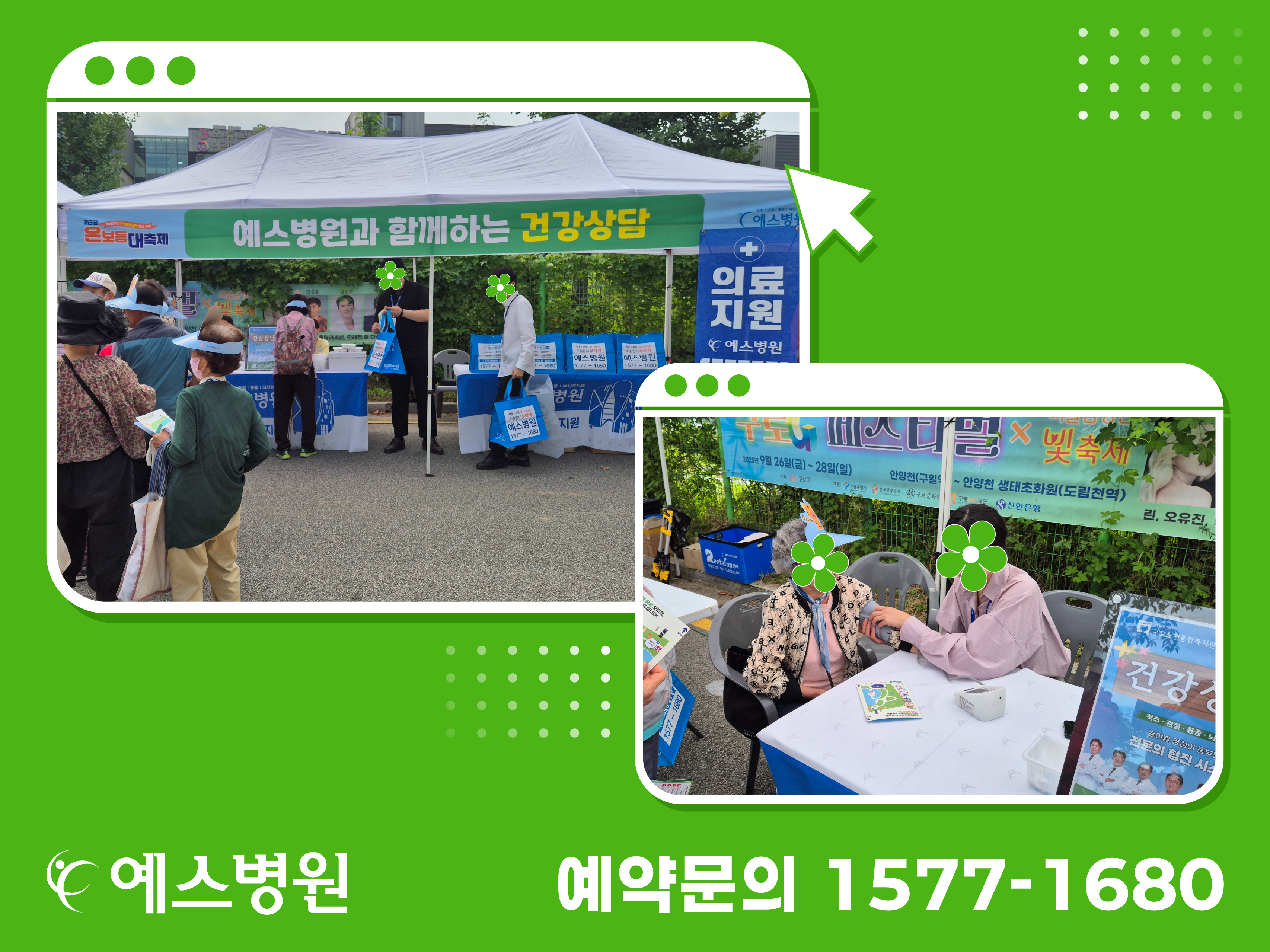 예스병원은 현장에서 혈당·혈압 측정과 건강 상담 부스를 운영했으며,