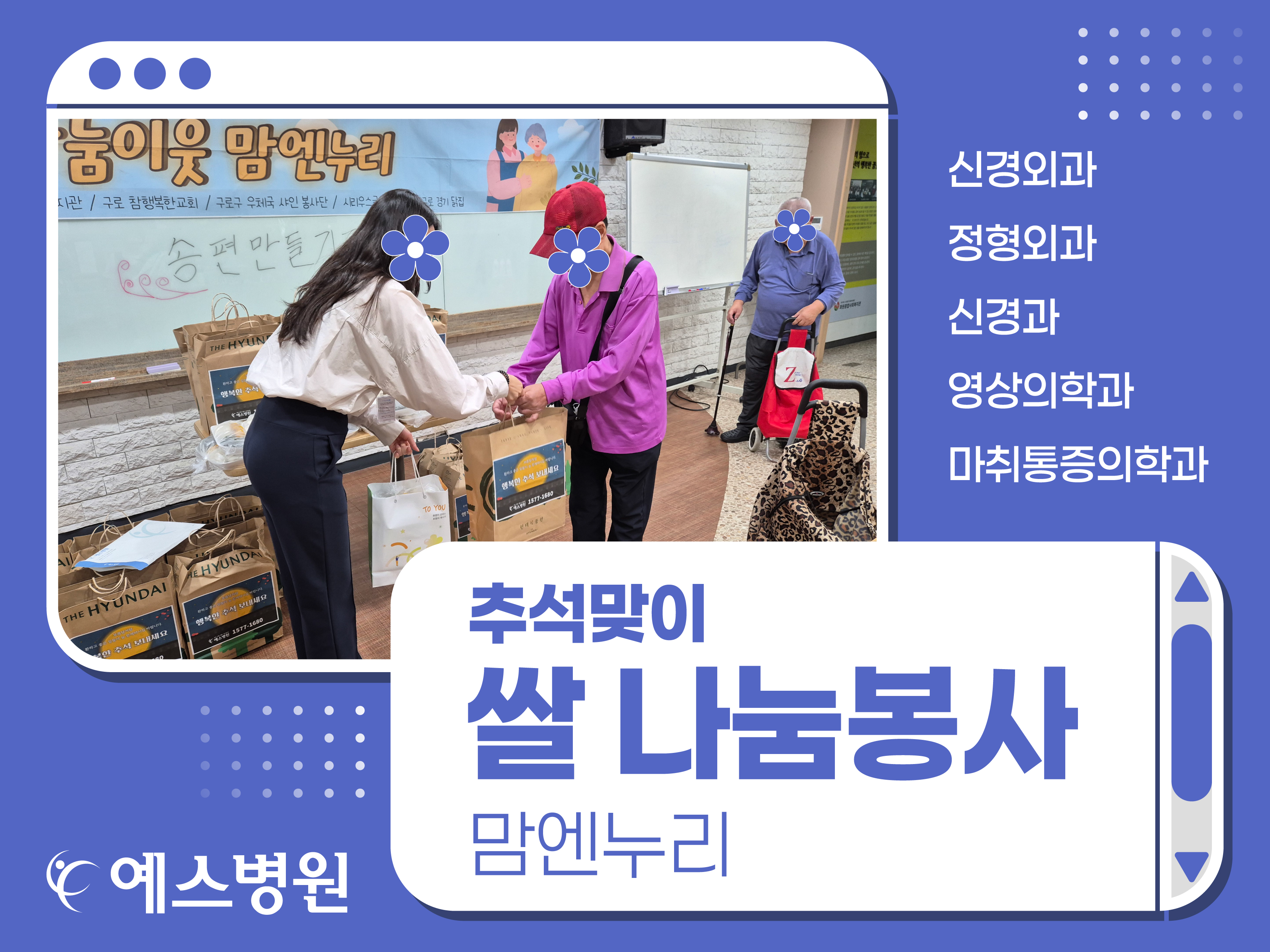 예스병원은 추석을 맞아 구로구 독거 어르신들을 위해